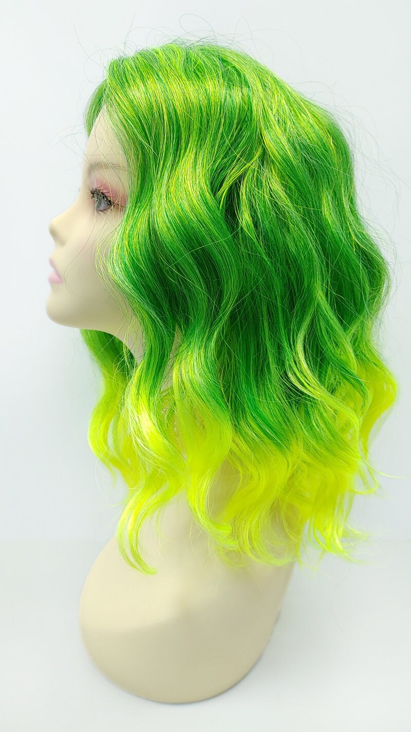 13 Inch Green With Neon Green Ends Wavy Medium Length Skin Etsy India